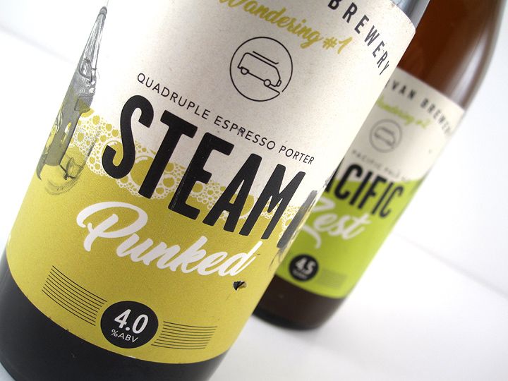 Steam Punked & Pacific Zest – bottle labels (Campervan Brewery)