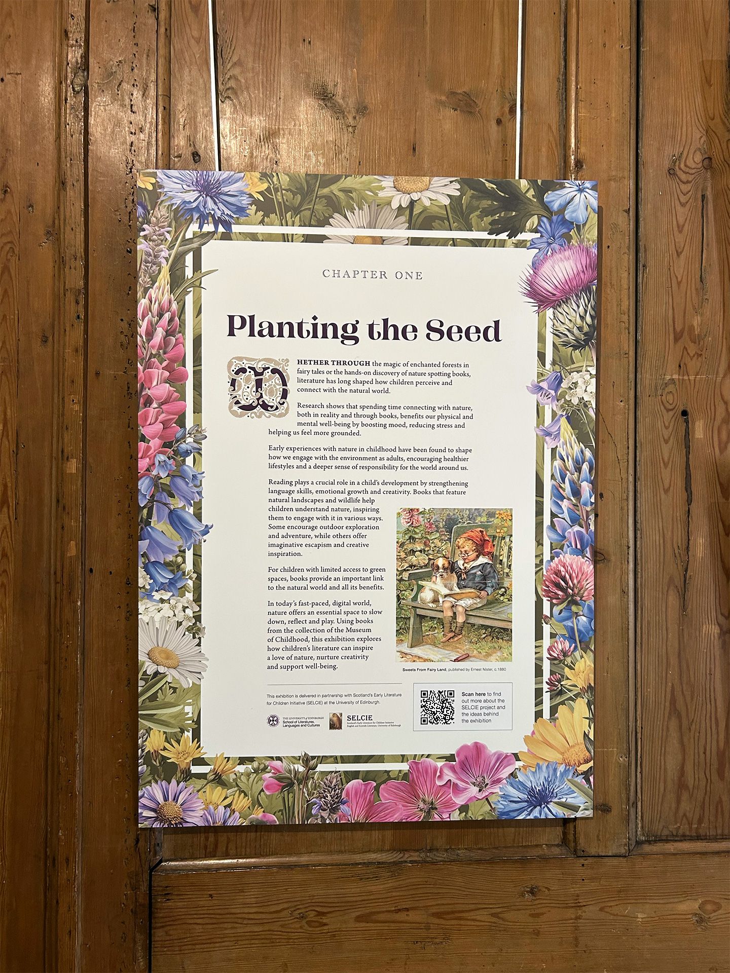 We were delighted to be invited to create the signage for The Museum of Edinburgh’s new exhibition ‘Nurture through Nature – with Children’s Books’.