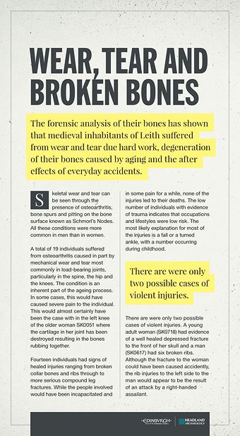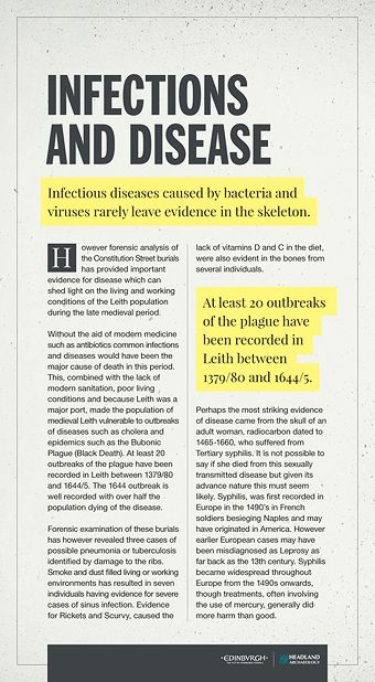 In 2009 while digging up Constitution Street in Leith, in advance of the new Edinburgh Tram lines. An ancient graveyard was unearthed consisting of nearly 400 burials, ageing between the 14th – 17th centuries. The finds have shed new details on the life and death of the ordinary inhabitants of Leith.