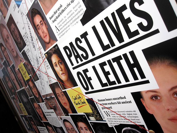 The Exhibition contained forensic art reconstructions of the past inhabitants, leading us to present the artwork in the style of a noticeboard in a police criminal investigation. Hopefully helping to pull the relevance of the exhibition into the today, as did the spookily contemporary reconstructions featured.