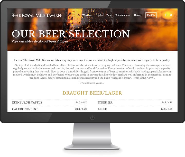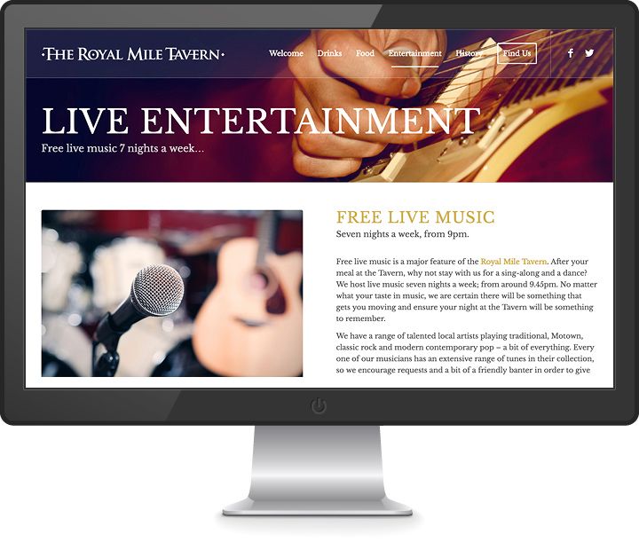 After completing a couple of websites for some of the Bruce Group’s music venues in Edinburgh, we were asked to create responsive sites for a few of their classic bars: The Royal Mile Tavern, The Fiddler’s Arm’s and The George IV Bar.