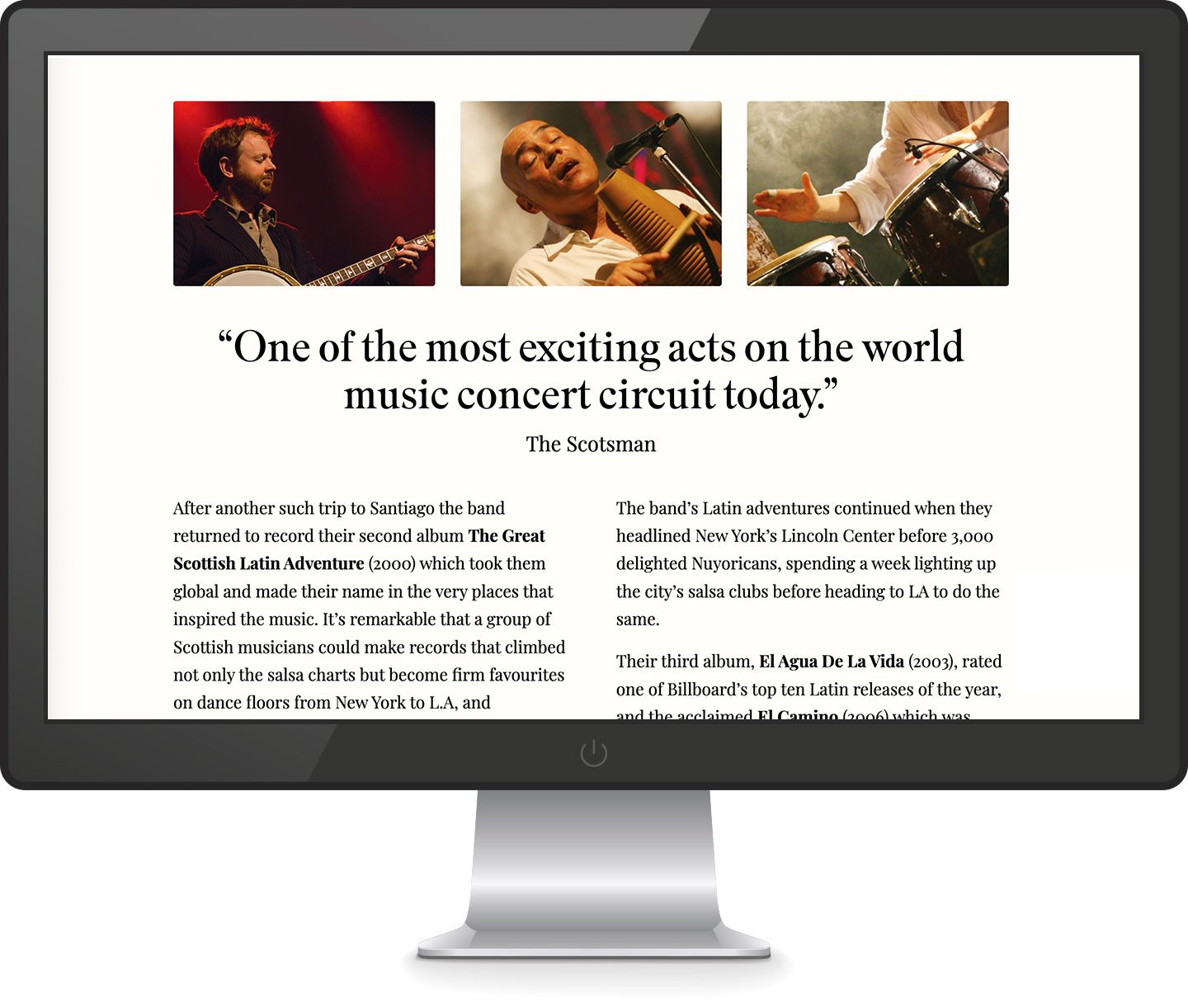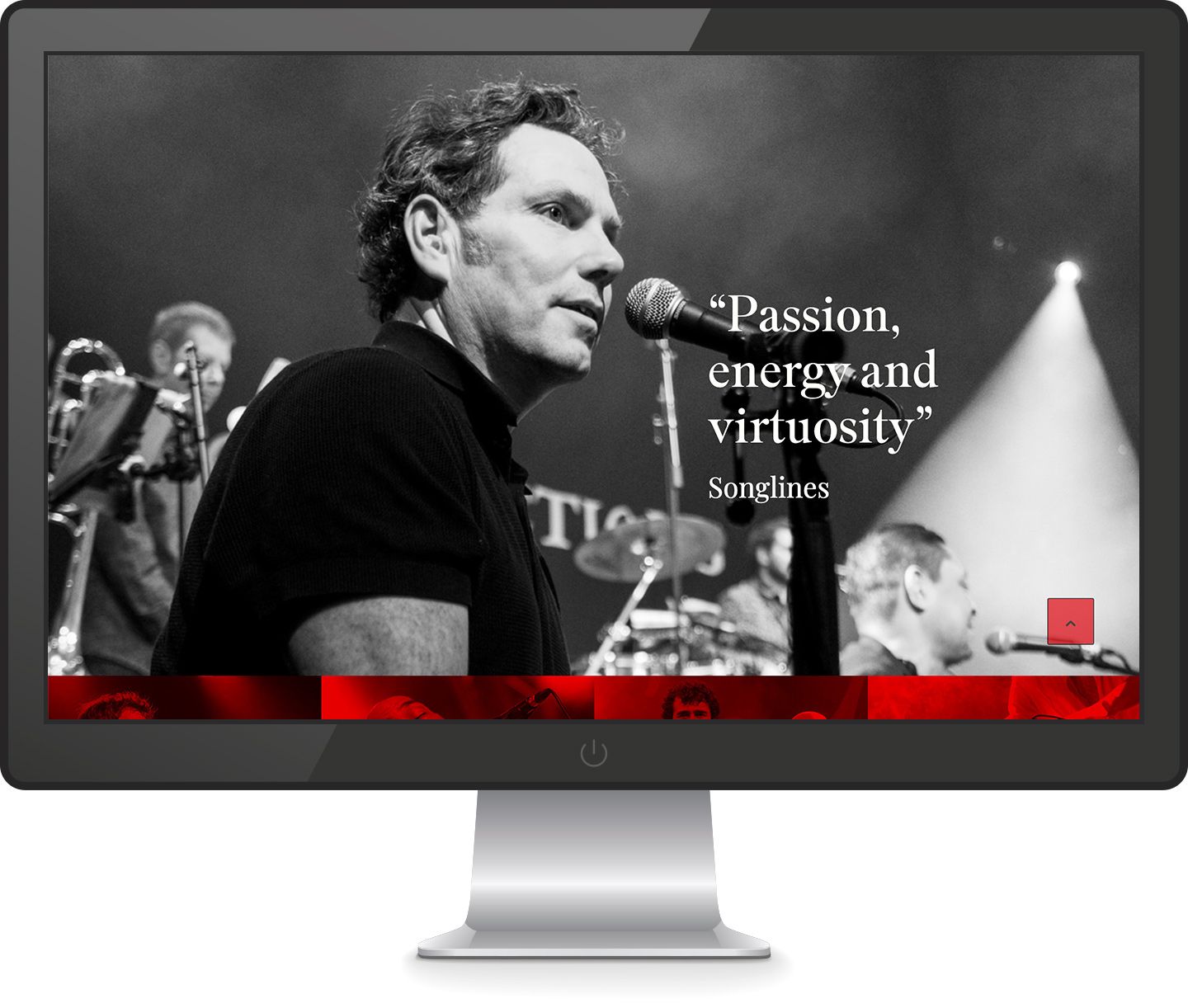 We wanted the site to capture a vibrant atmosphere of the band and their music. Going with a strong red/black/white color scheme and utilising their strong photo archive throughout.