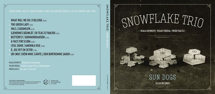 After having worked with the wonderful Nuala Kennedy for many years, we were delighted to be asked to work on the sleeve for her latest project ‘The Snowflake Trio’. A collaboration between Ireland’s Nuala, Norway’s Frode Haltli and Vegar Vårdal.