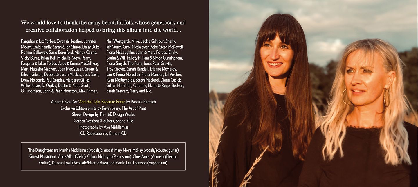 Having worked with the wonderful singer/songwriter Martha Middlemiss since her early days. It was an honour to be asked to design the CD sleeve for ‘Golden Shore’, her new collaboration with Mary Moira McKay as ‘The Daughters’.